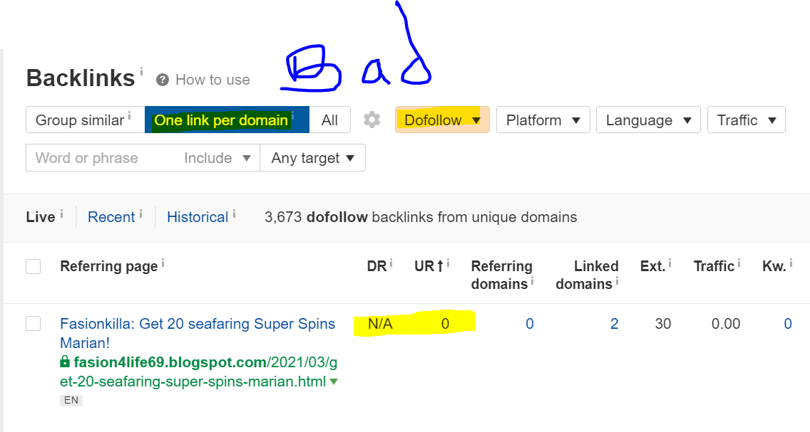 Sites or pages with a low UR rating do not pass authority, or support rankings very well.