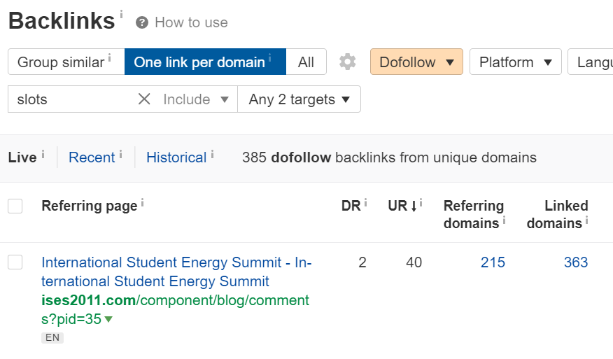 • Relevance is getting gambling links from gambling sites, inside the target market, these are the golden goose. NOTHING beats a Canadian slots website that is ranking, linking to our Canadian slots pages. DA and all the SEO metrics are just indicators. If another gambling site is ranking in our space there is no harm in asking. He who does not ask, will not get.